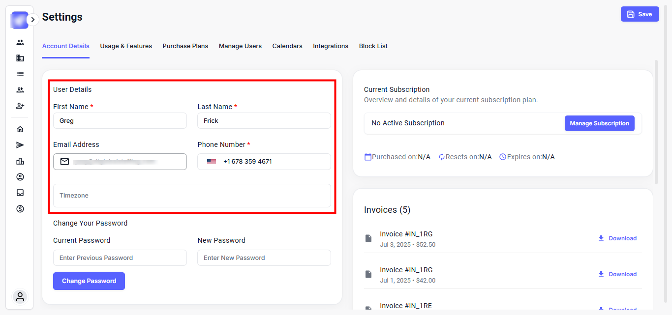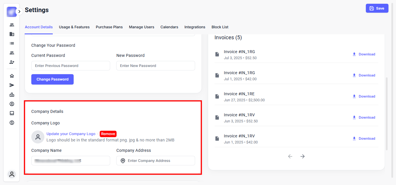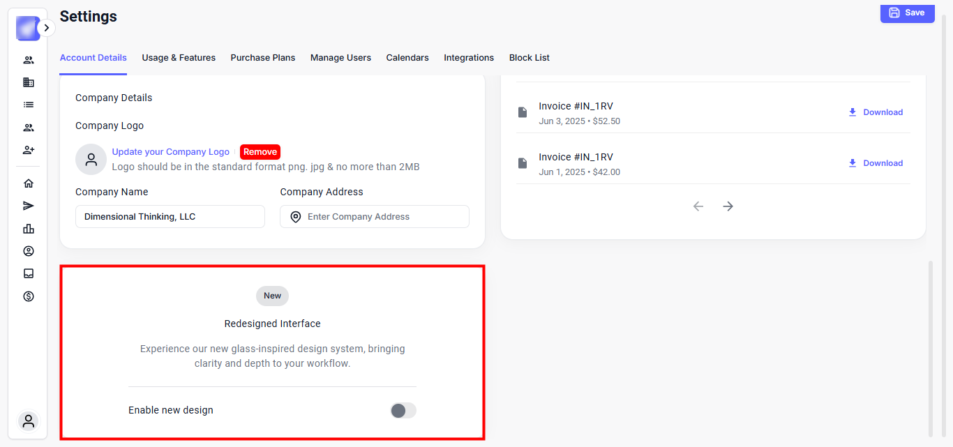 Keeping your account information up to date ensures seamless access, personalized communication, and accurate workspace identity. Whether you're updating your contact number, company details, switching to the new UI, or track invoices, the Account Details section keeps everything within your control.