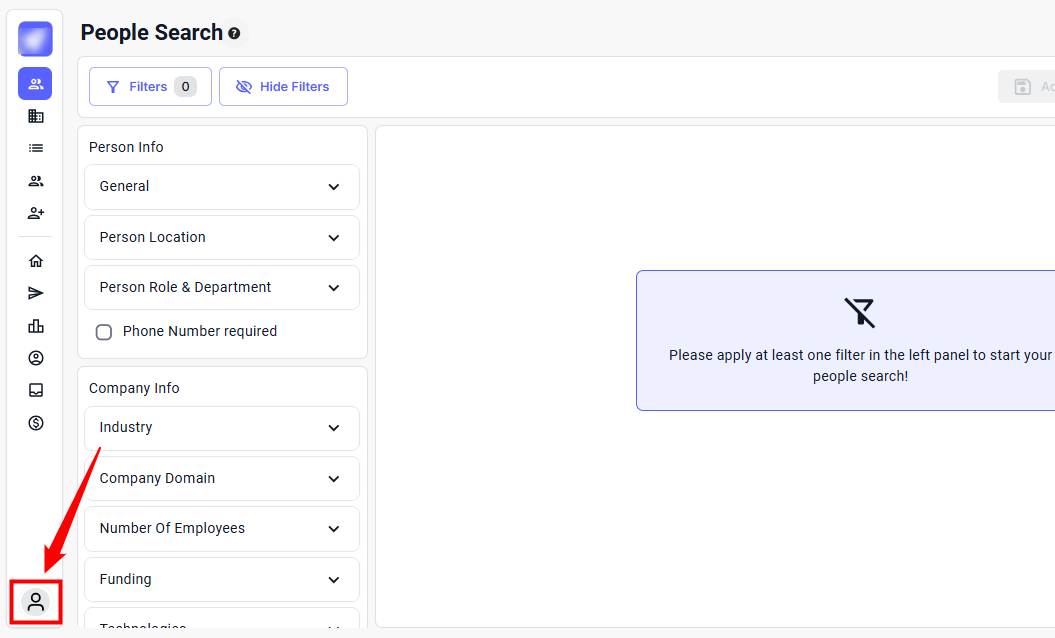 Step 1: Log in to your account and click the Account icon from the bottom left sidebar.