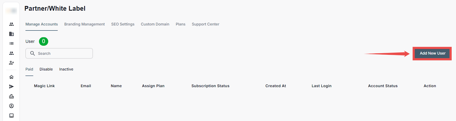 Step 1: Log in to your account and click on the White Label option on the Left-hand sidebar.