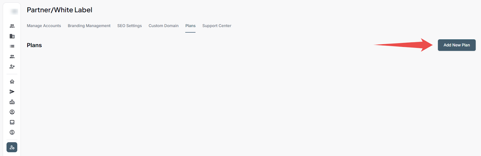 Step 1: Log in to your account and click the White Label icon on the Left-hand sidebar.