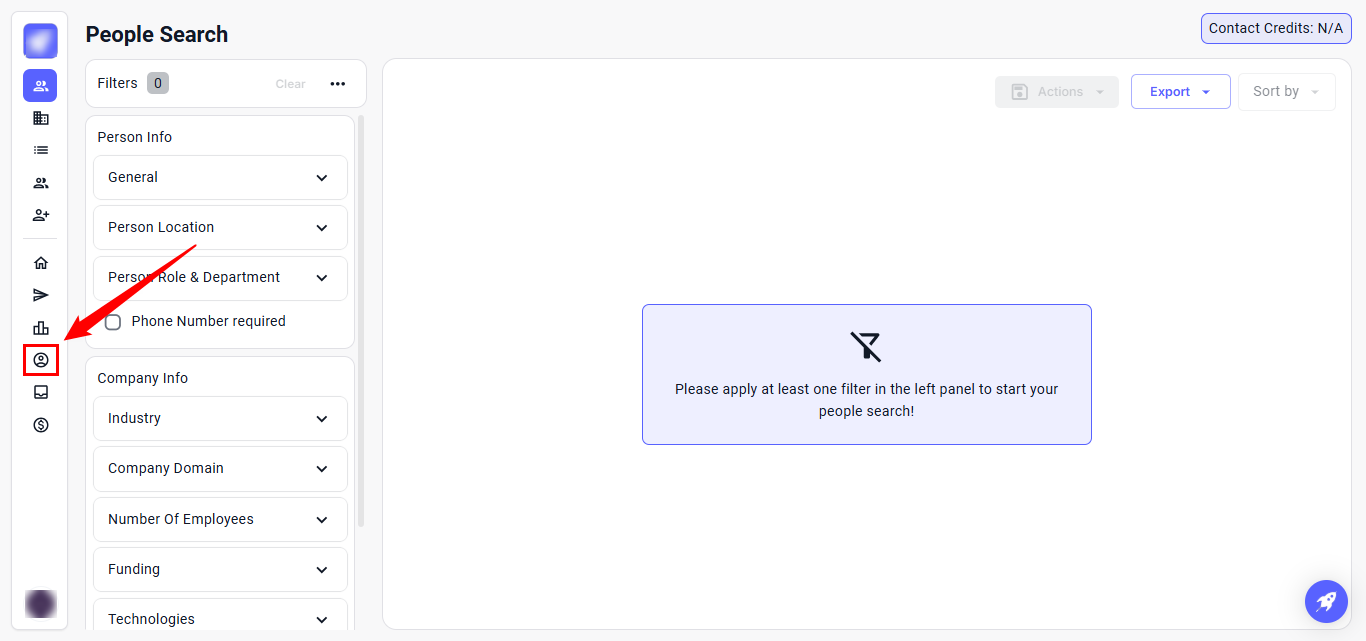Step 1: Log in to your account and click the Accounts icon from the left-hand sidebar.