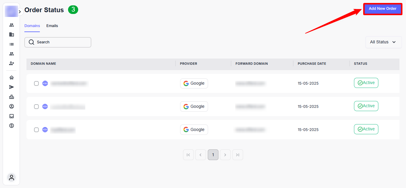 Note: Each domain you add includes 3 G-Suite inboxes by default. These inboxes can be used for cold outreach campaigns (sending and managing responses to prospects).
