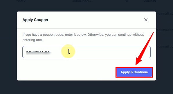 Applying a discount coupon to your mailbox orders helps you save costs and manage billing more effectively. With this, you can activate special promotions or credits directly during the ordering process.
