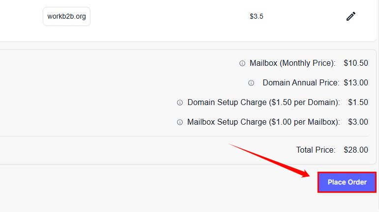 Step 11: Once you've filled in the details, click the Add button and Place Order to add the domain to the order.