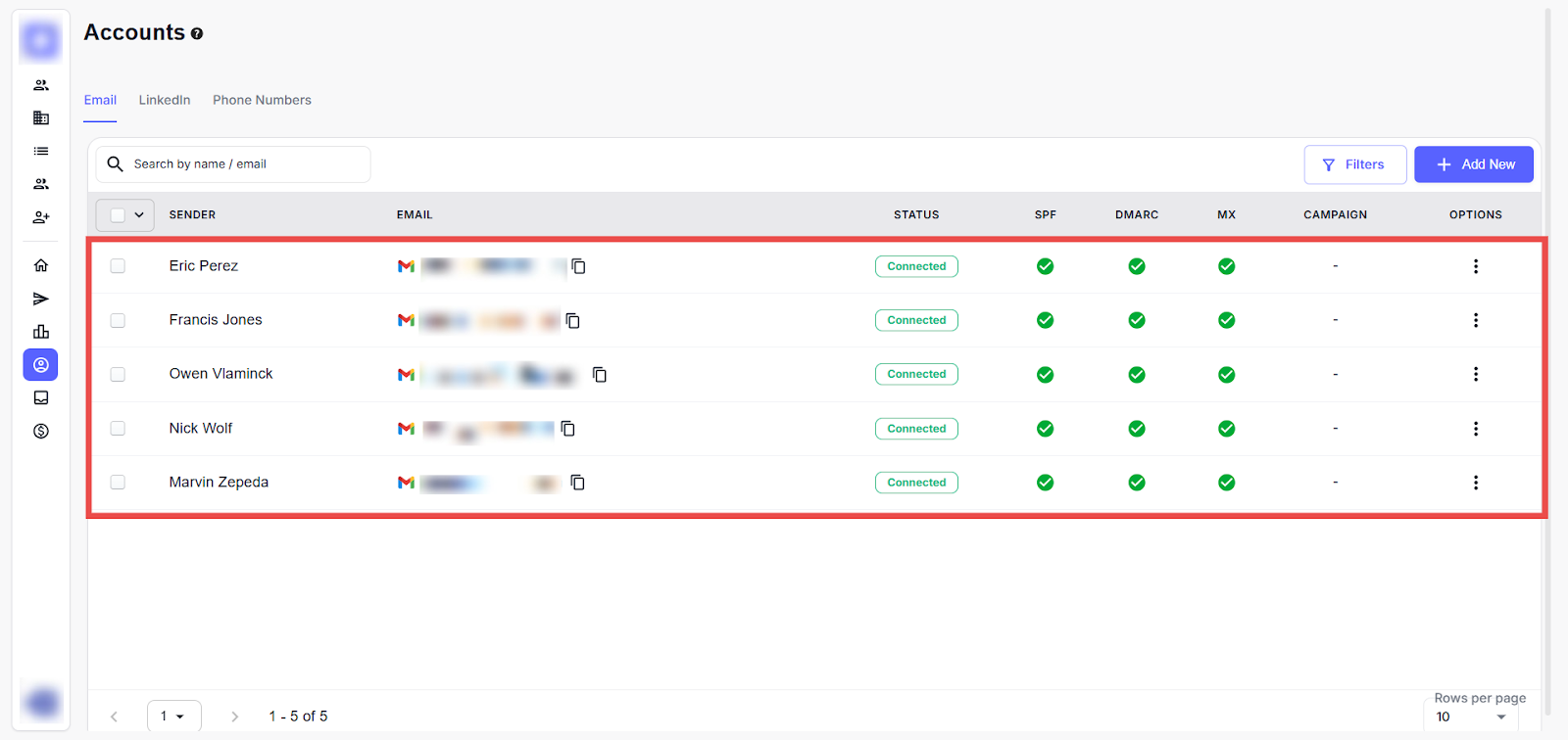 Step 2: By default, you will be navigated to the Email Accounts tab. Here, you can view all connected email accounts.