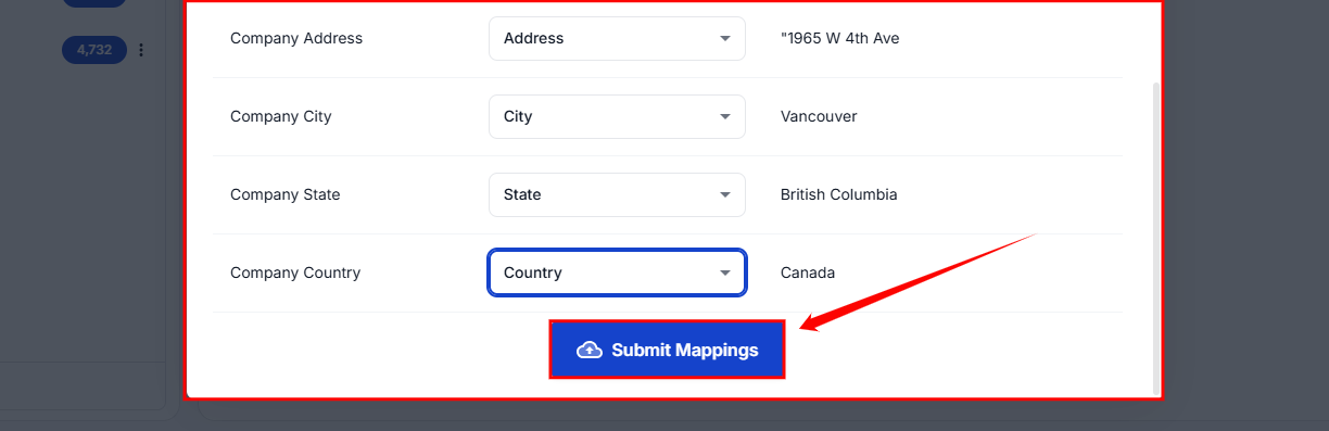 Step 7: You will be prompted to map the fields from your CSV file. Ensure that each column is correctly mapped (e.g., Address, City, State, etc.). Once confirmed, click Submit Mappings to finalize the list creation.