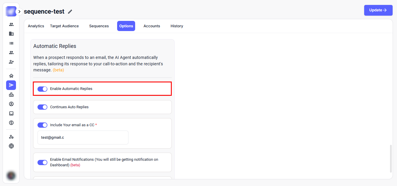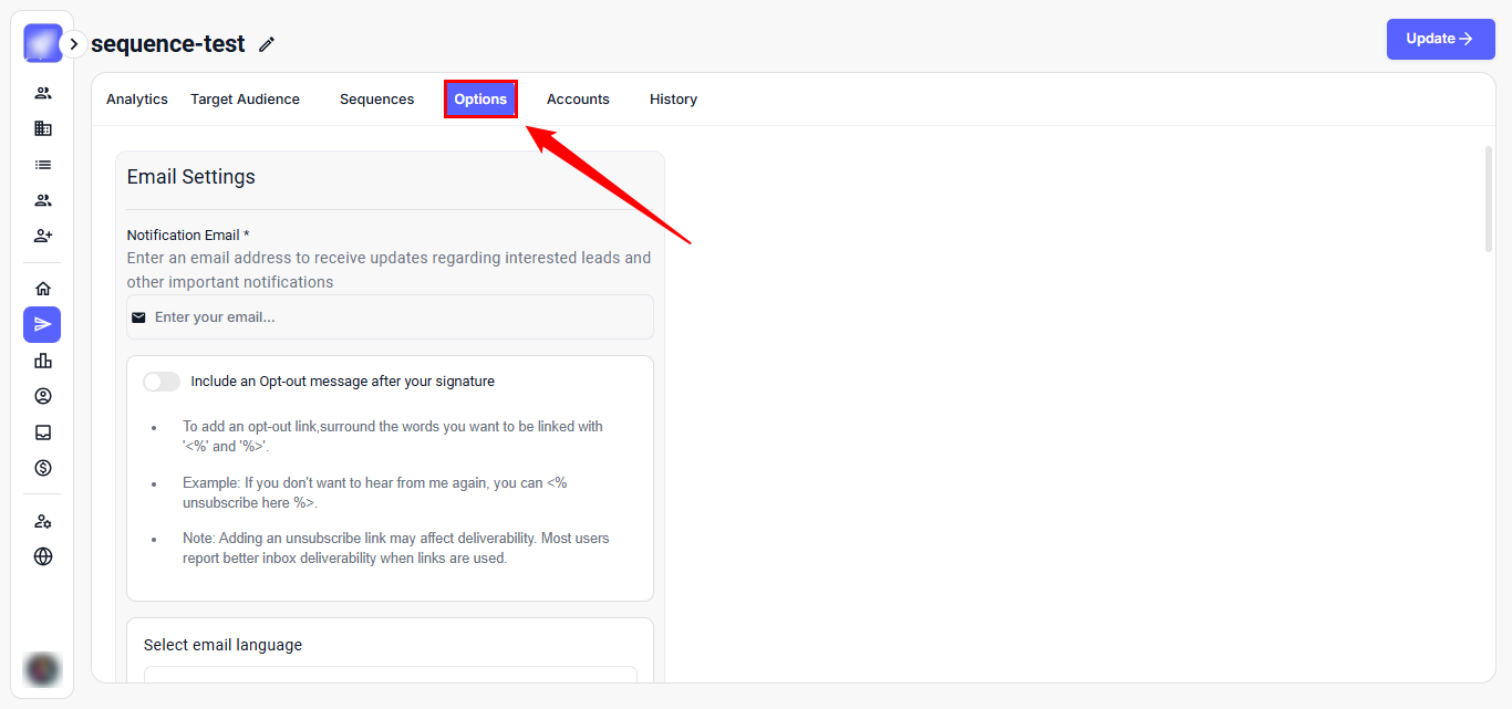 Step 1: Go to your campaign and open the Options tab.