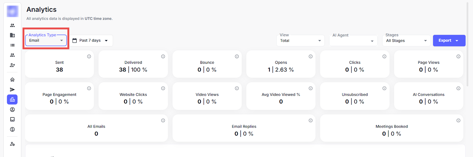 Step 1: Log in to your account and click the Analytics icon on the left-side navigation menu.