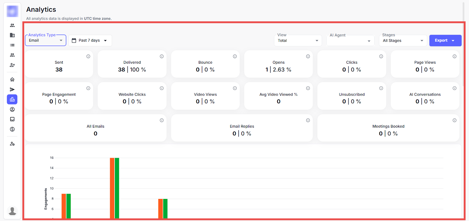 Analytics helps you track and optimize your outreach efforts by providing insights into email performance, multichannel engagement, and website behaviour. By analysing key metrics like open rates, click-through rates, and conversions, you can identify what’s working and adjust your strategies to boost engagement and conversions.