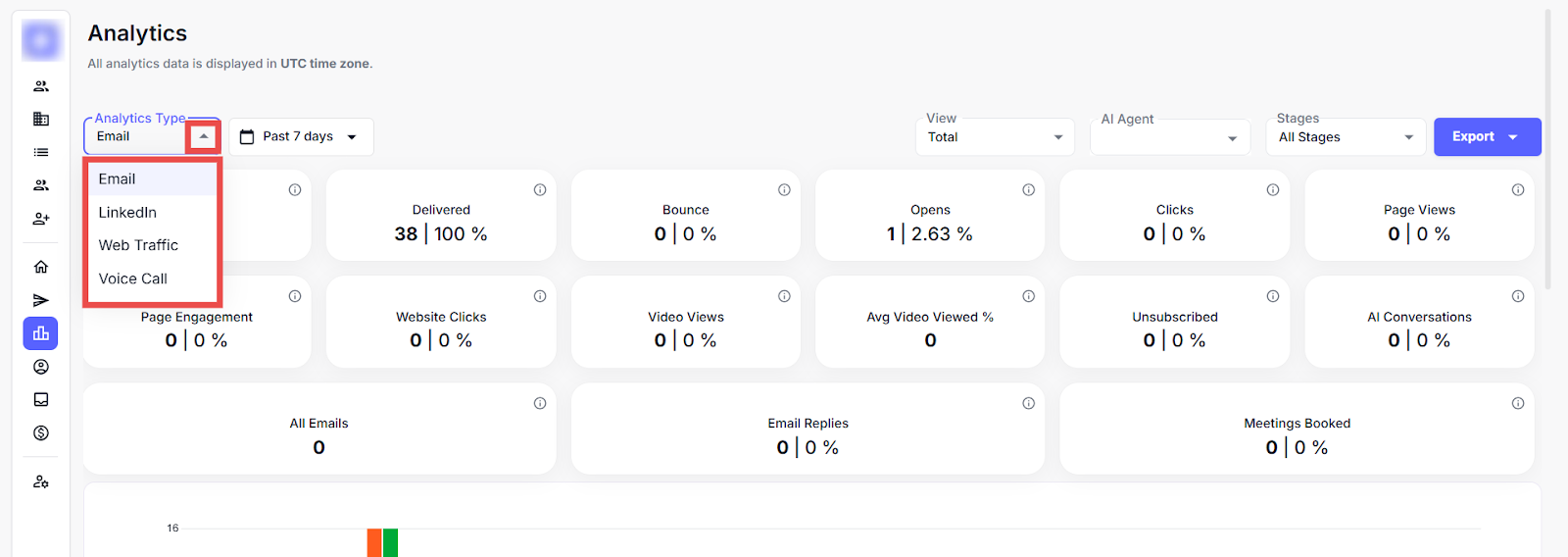 Step 3: Click the Analytics Type drop-down to view the different types of campaign analytics.