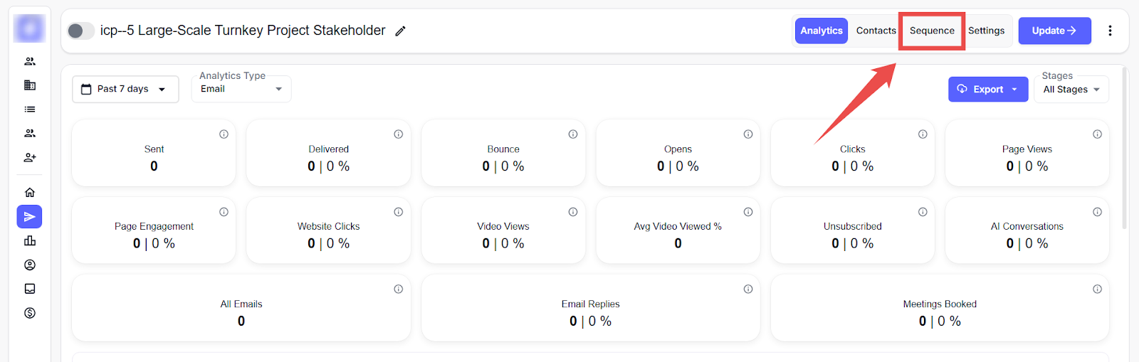 Step 1: In your campaign, open the Sequence tab.