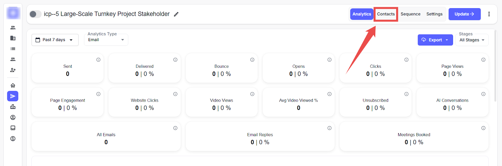 Step 1: Inside your campaign, navigate to the Contacts tab.