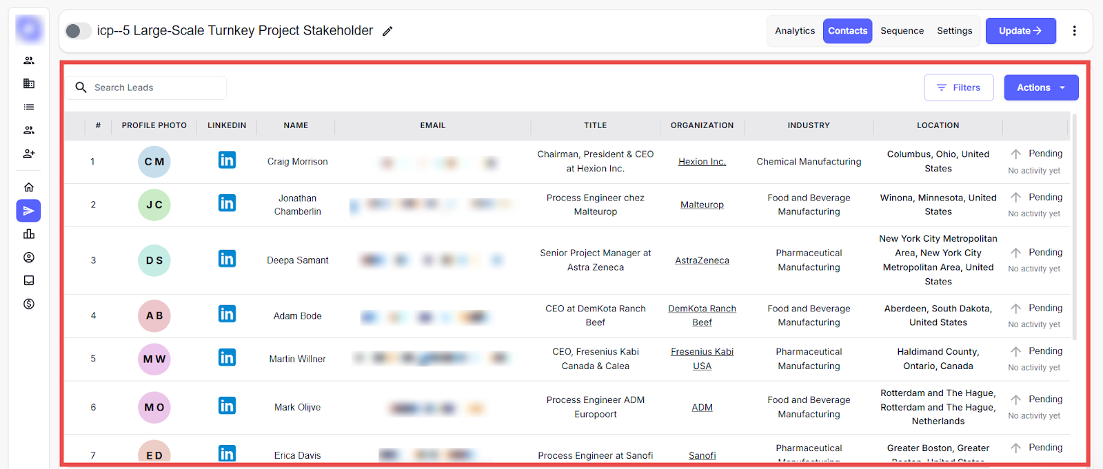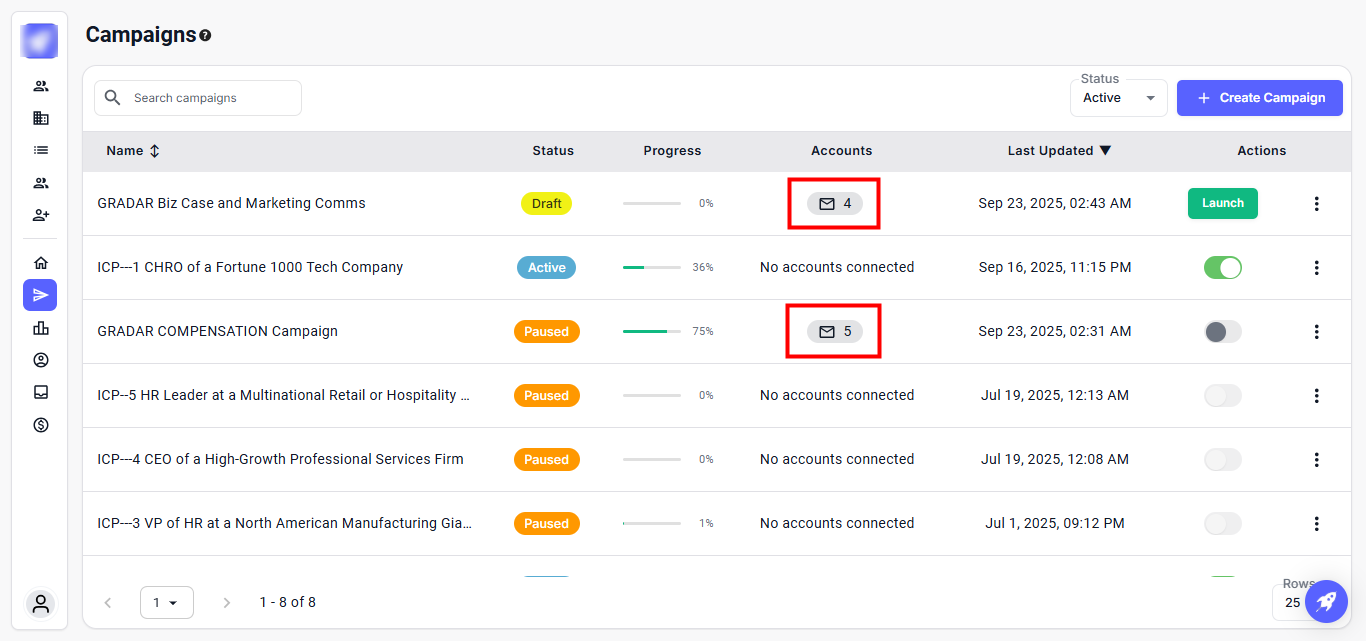 Here, you can view all the accounts connected to the campaign.