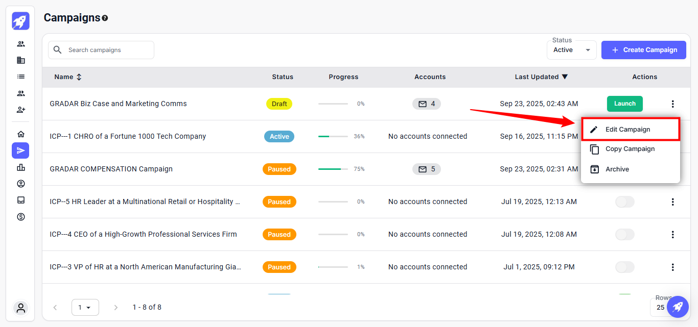 If a campaign isn’t launched, no emails will go out. This quick check ensures your campaign is active and ready to send; if not, you need to edit the campaign.