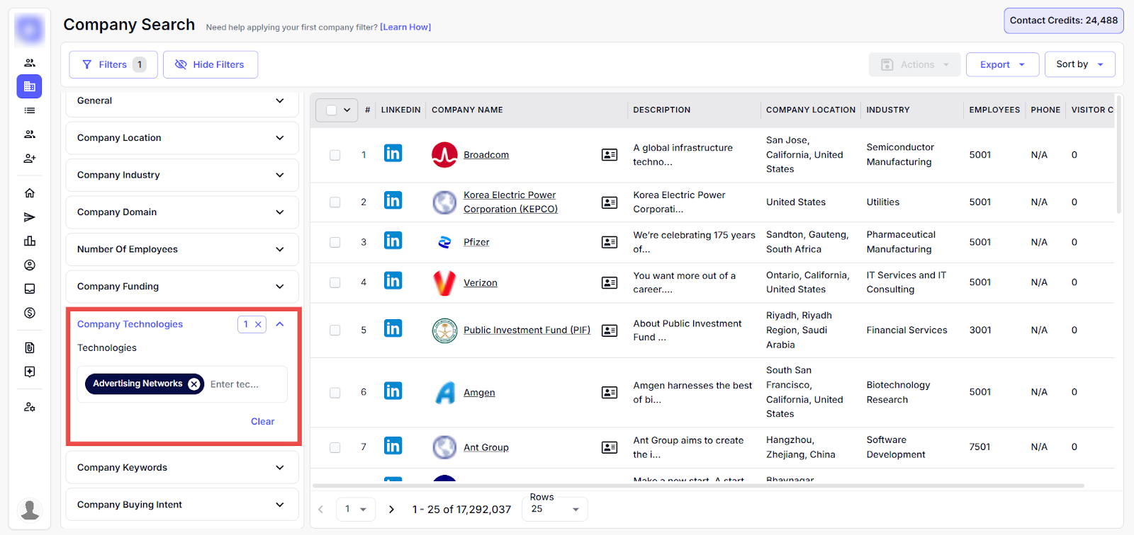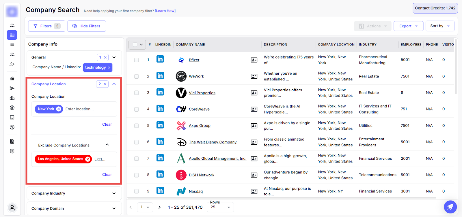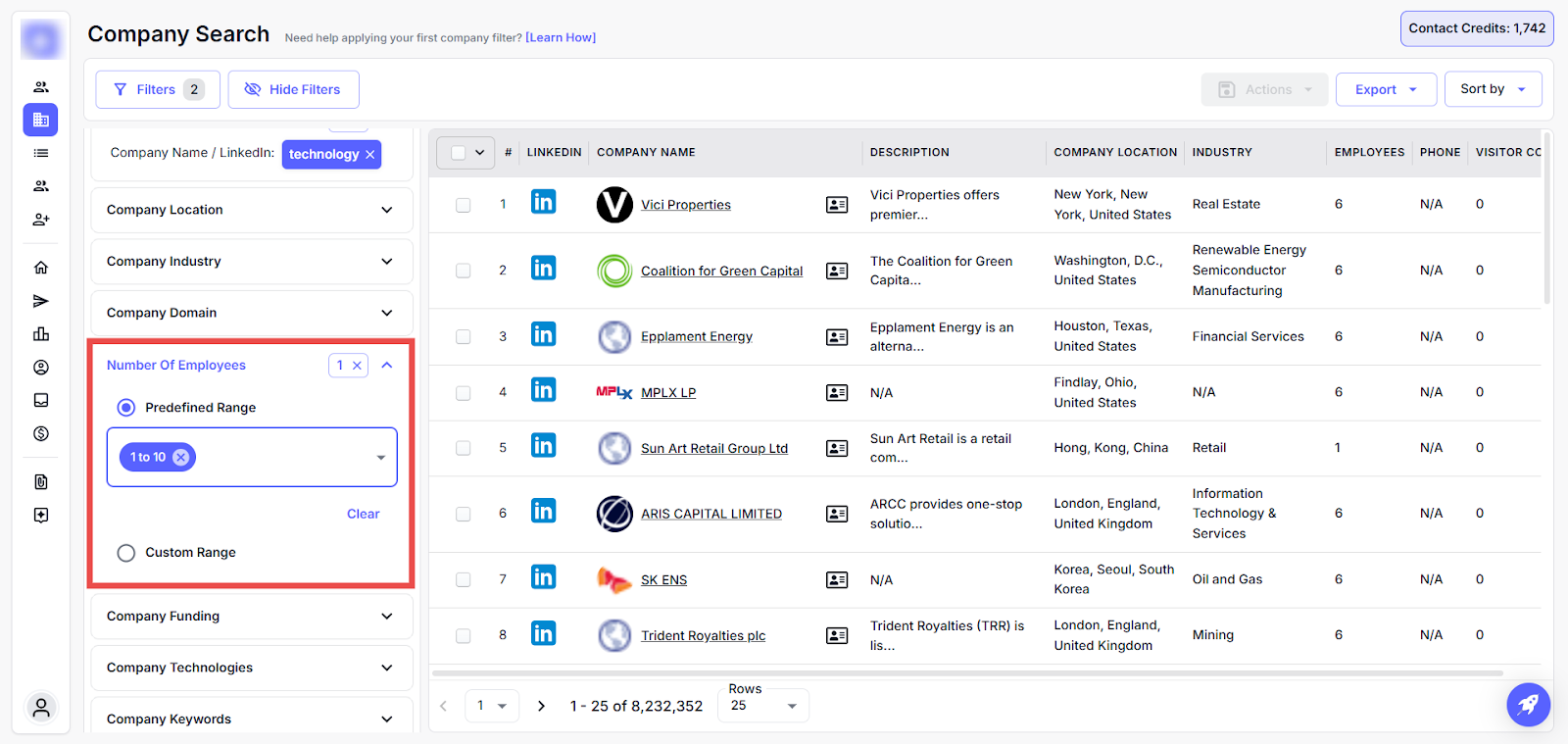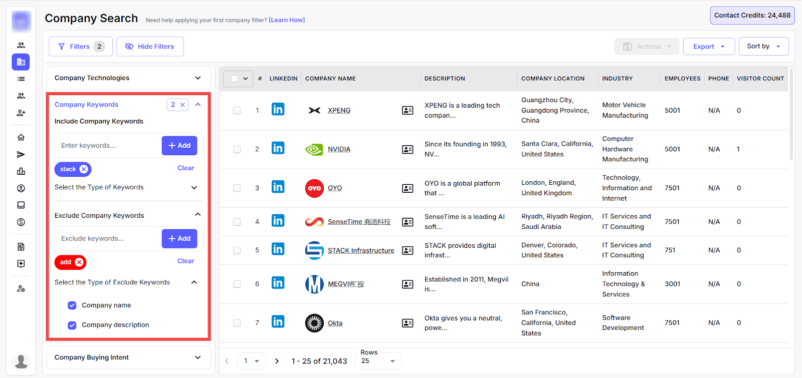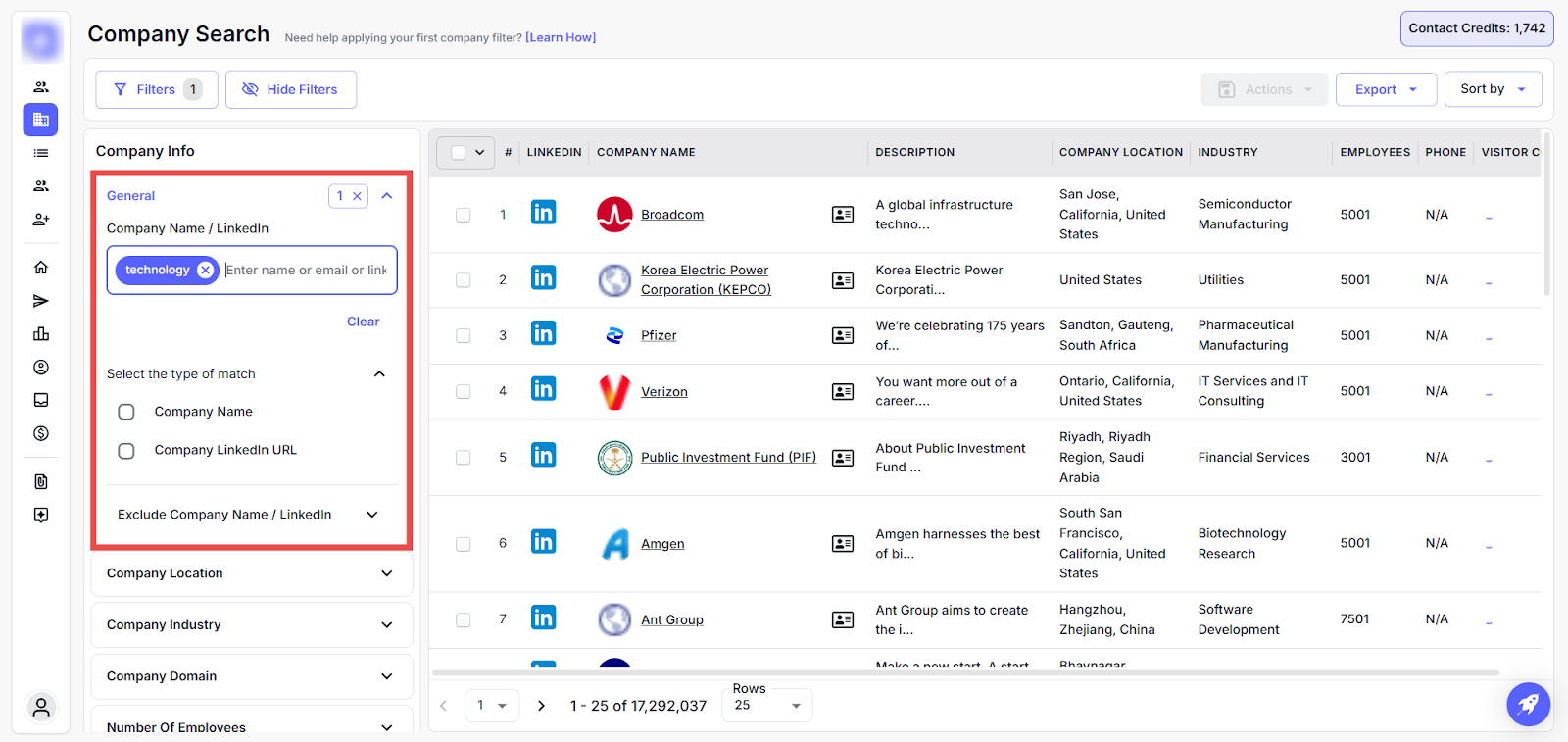 This section lets you refine your search using detailed company-related filters. You can zoom in on the following attributes to target the most relevant companies for your campaign: