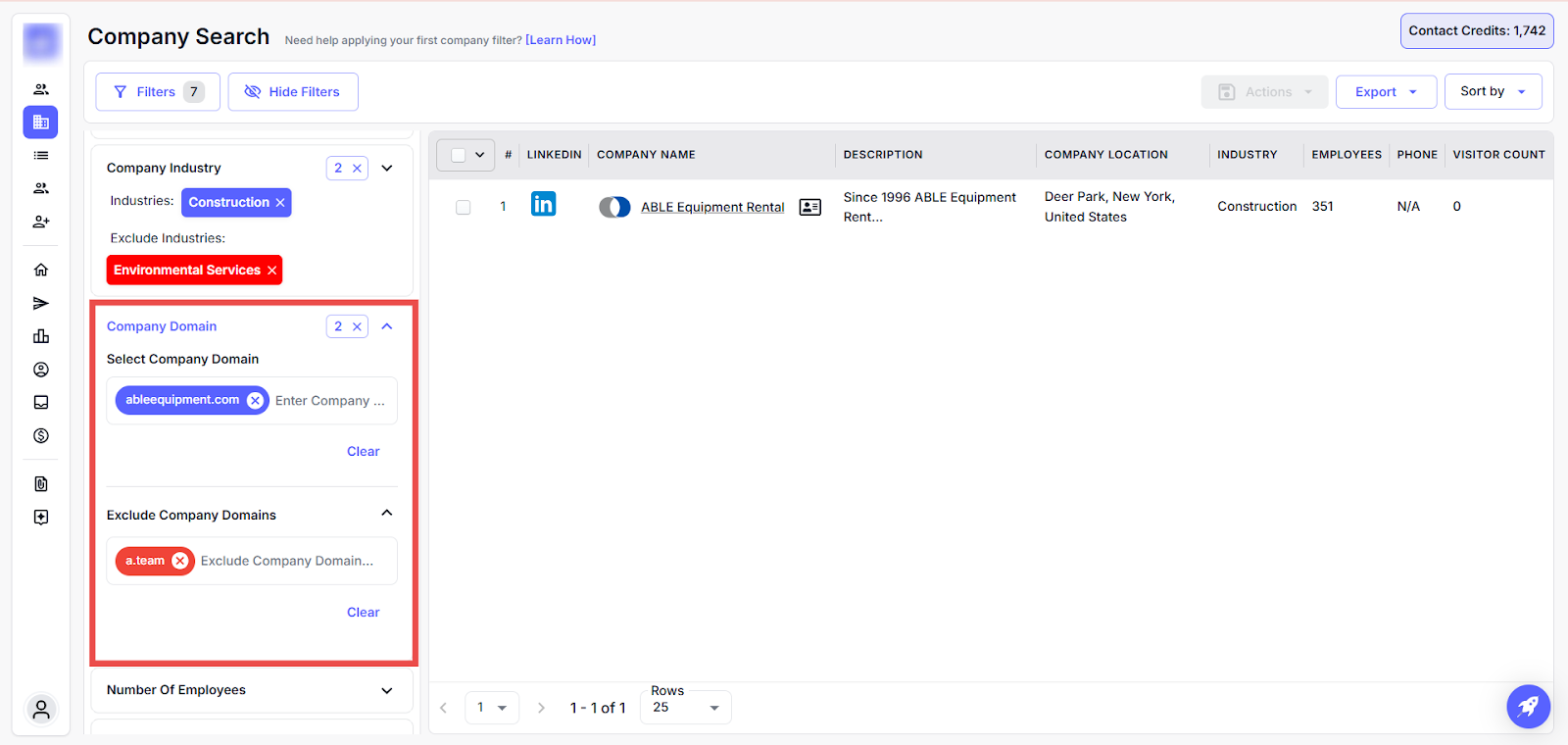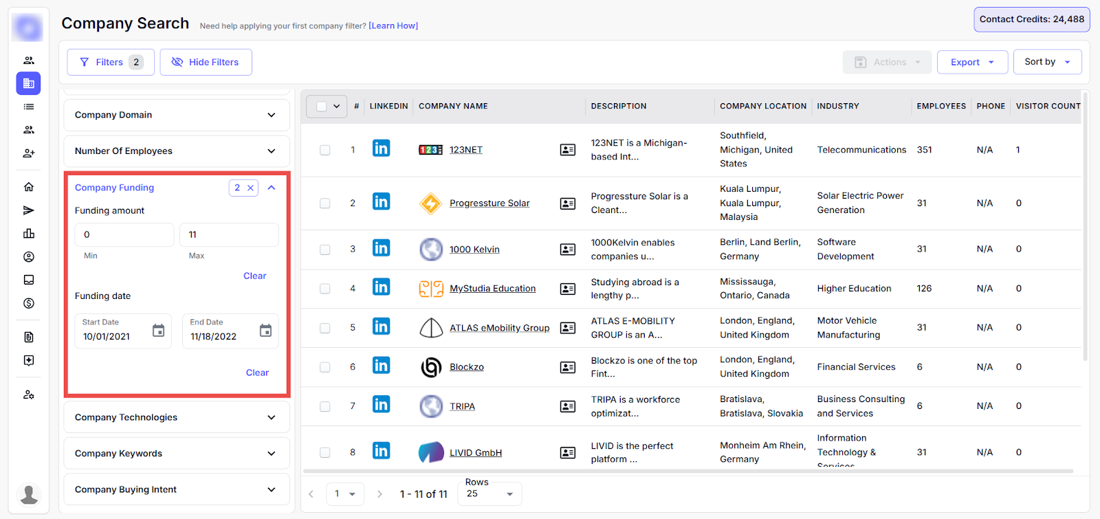 With all key filters in one place, you can easily refine and define your company search criteria.
