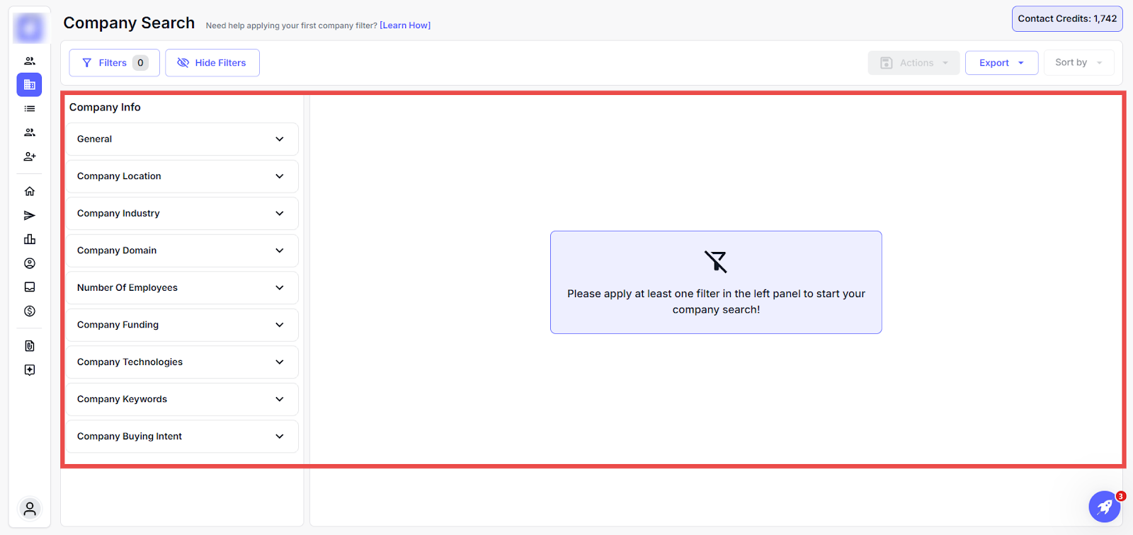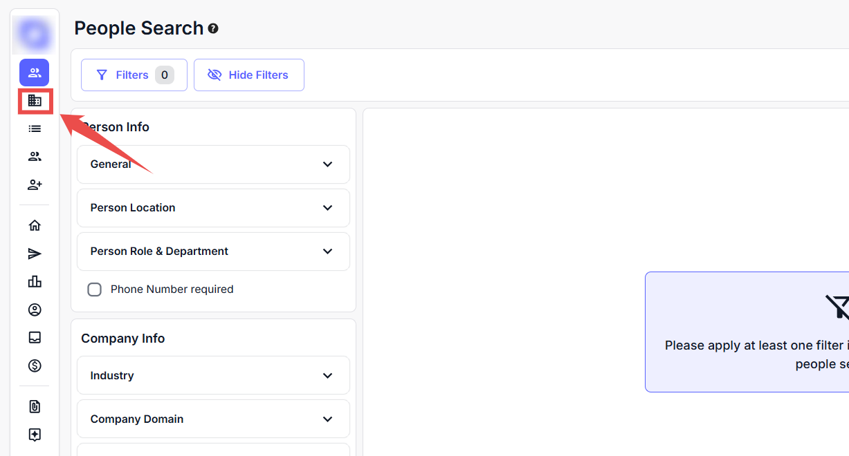 The Company Search feature helps you identify and target the right companies for your outreach campaigns. It allows you to apply smart filters based on company-level data, so you can focus on the most relevant prospects for your business goals.