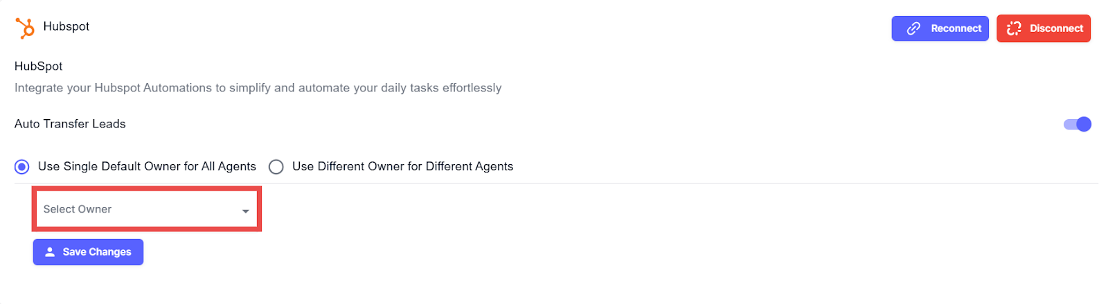 Set up your HubSpot integration to enable automatic lead syncing and ownership assignment within your CRM.