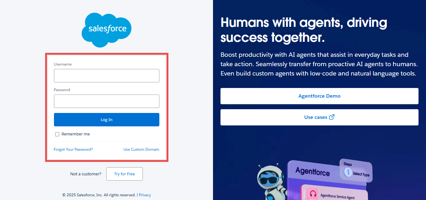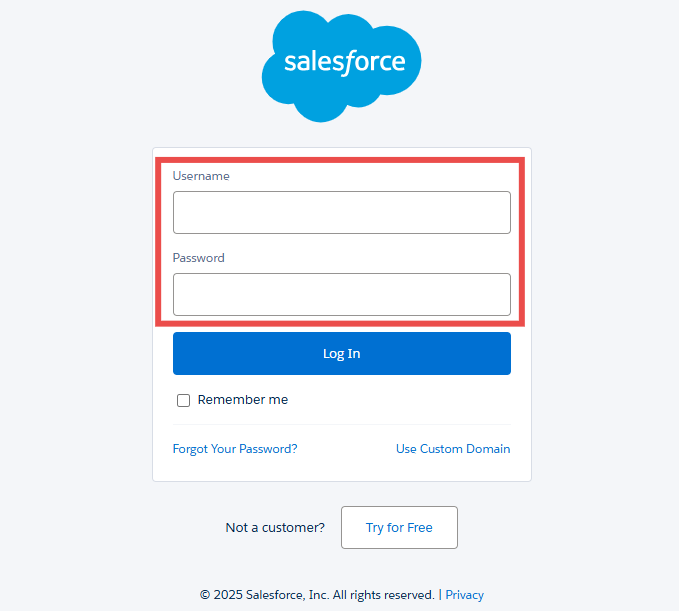 Step 1: Enter your Salesforce Username and Password in the field.
