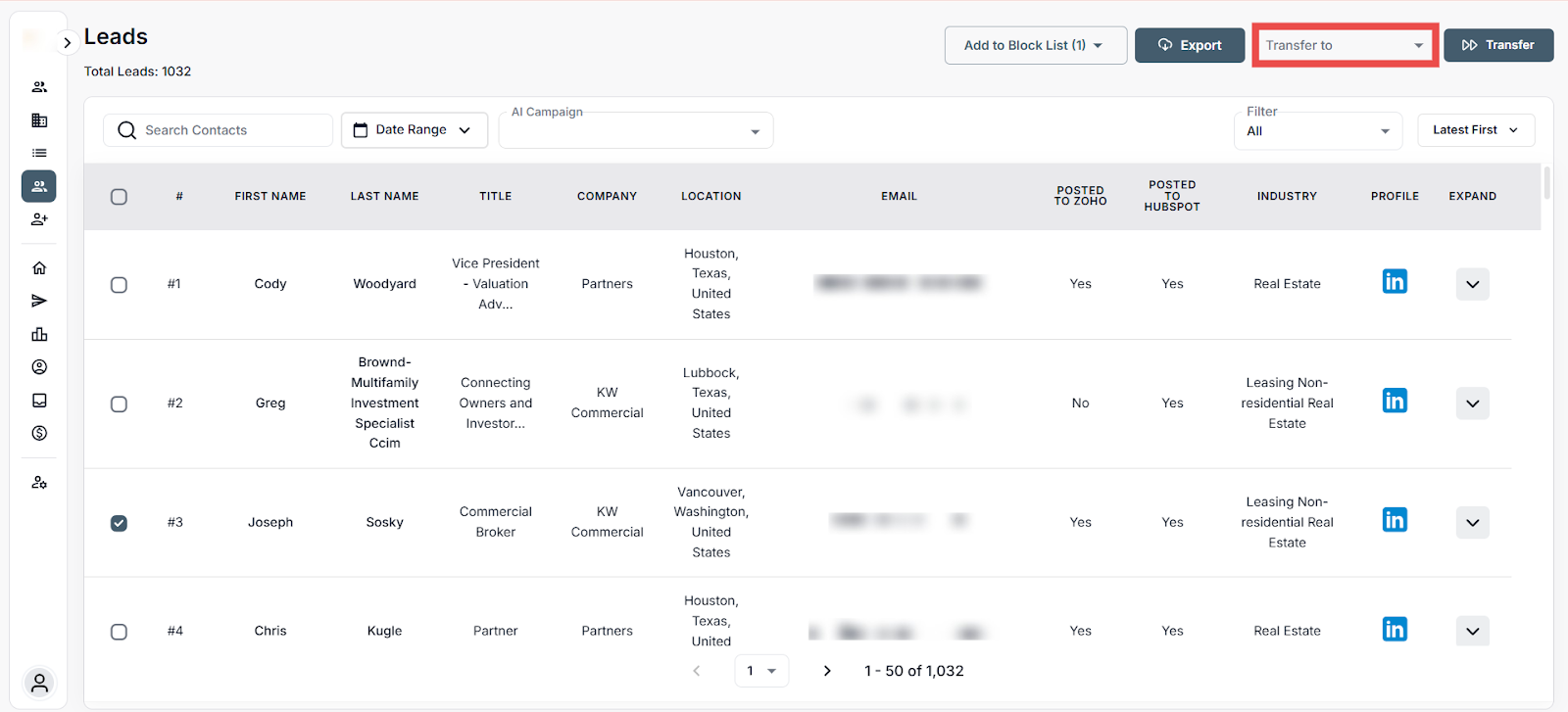 Step 2: Click on any of the leads you want to transfer to Salesforce. (For example, "Joseph").