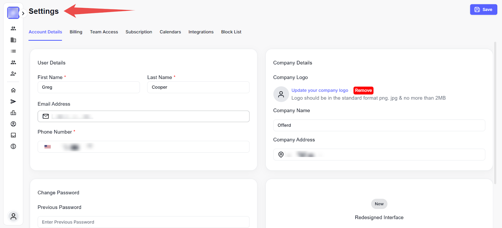 Step 2: Select the Settings option to access the Account Details page.