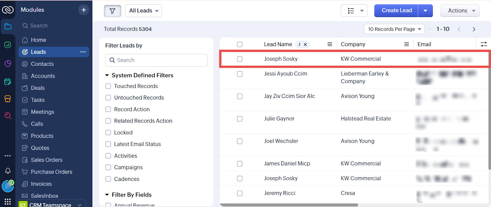 Step 2: Click on any of the leads that you want to transfer to Zoho. For demonstration purposes, we will proceed with Joseph.