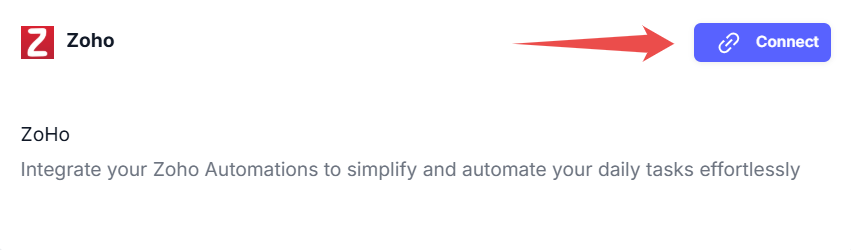 Step 4: Click on the Connect button to authorize access to your Zoho CRM account.