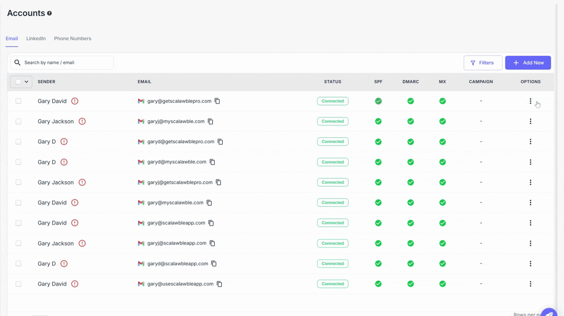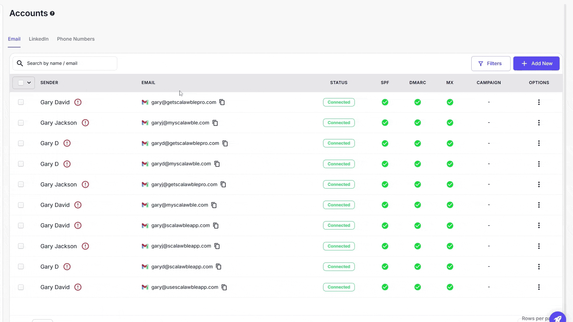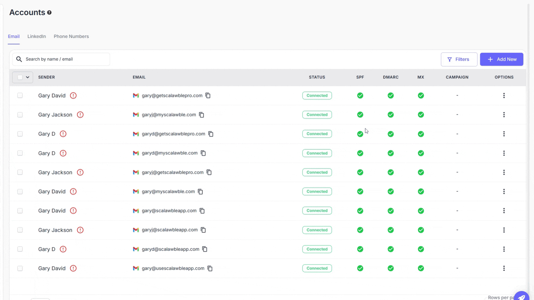 | INFO: A minimum of 45 mailboxes is required to maintain strong deliverability, safeguard domain reputation, and ensure scalable outreach across campaigns. Each mailbox has a daily sending limit (around 30–50 emails during ramp-up), and distributing volume across multiple mailboxes helps prevent oversending, reduce spam risks, and maintain consistent campaign performance. |