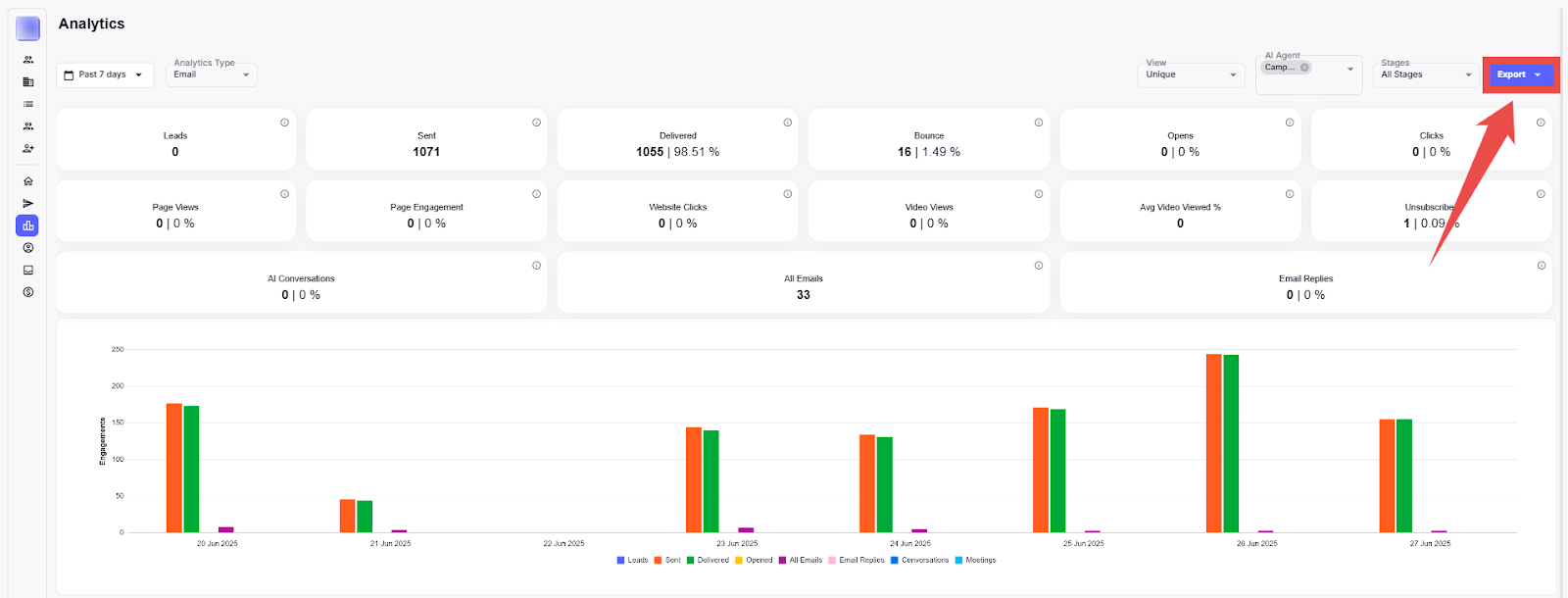 Step 4: Click on the Export drop-down to access additional reporting options.