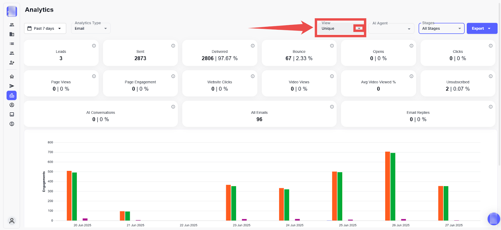 With visual breakdowns like bar graphs and key performance indicators, you can analyse daily activity, evaluate campaign impact, and refine your strategy based on real-time performance insights.