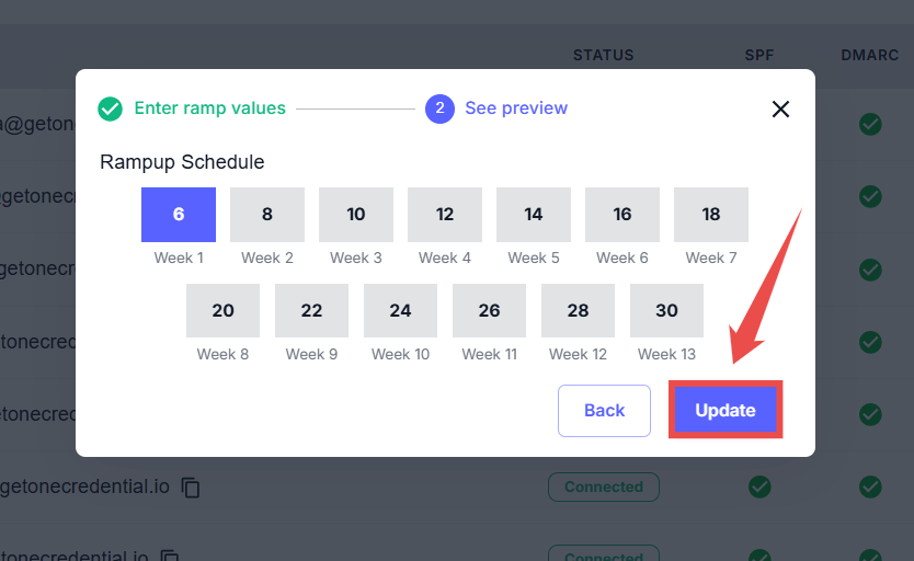 Step 5: Click on the Update button to apply your updated ramp-up schedule.