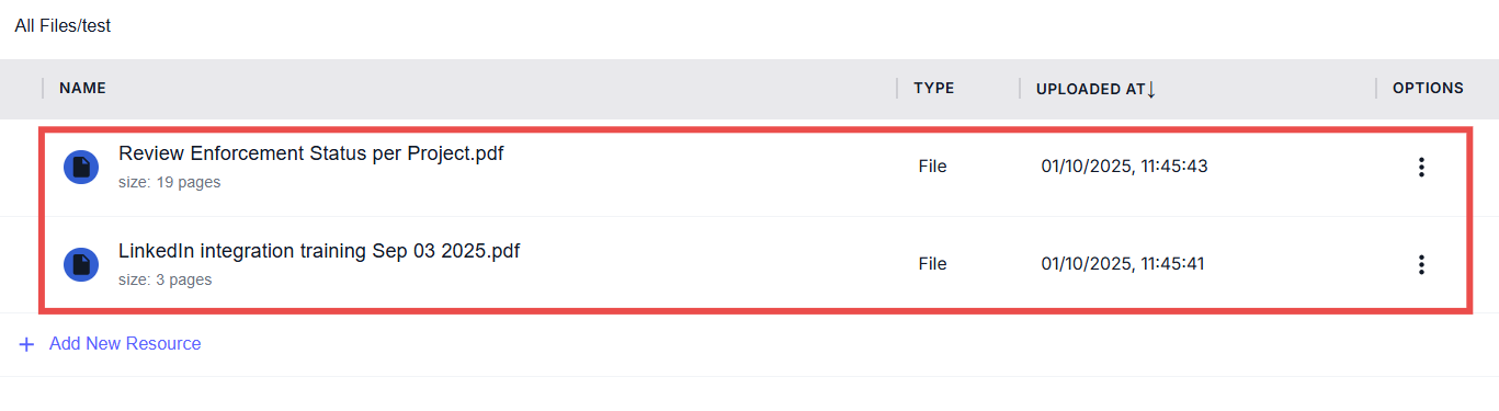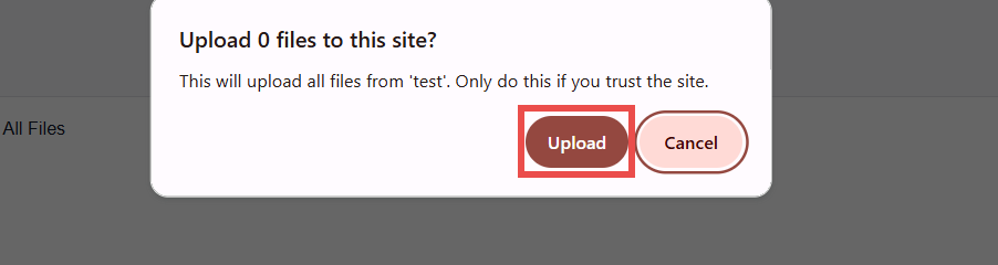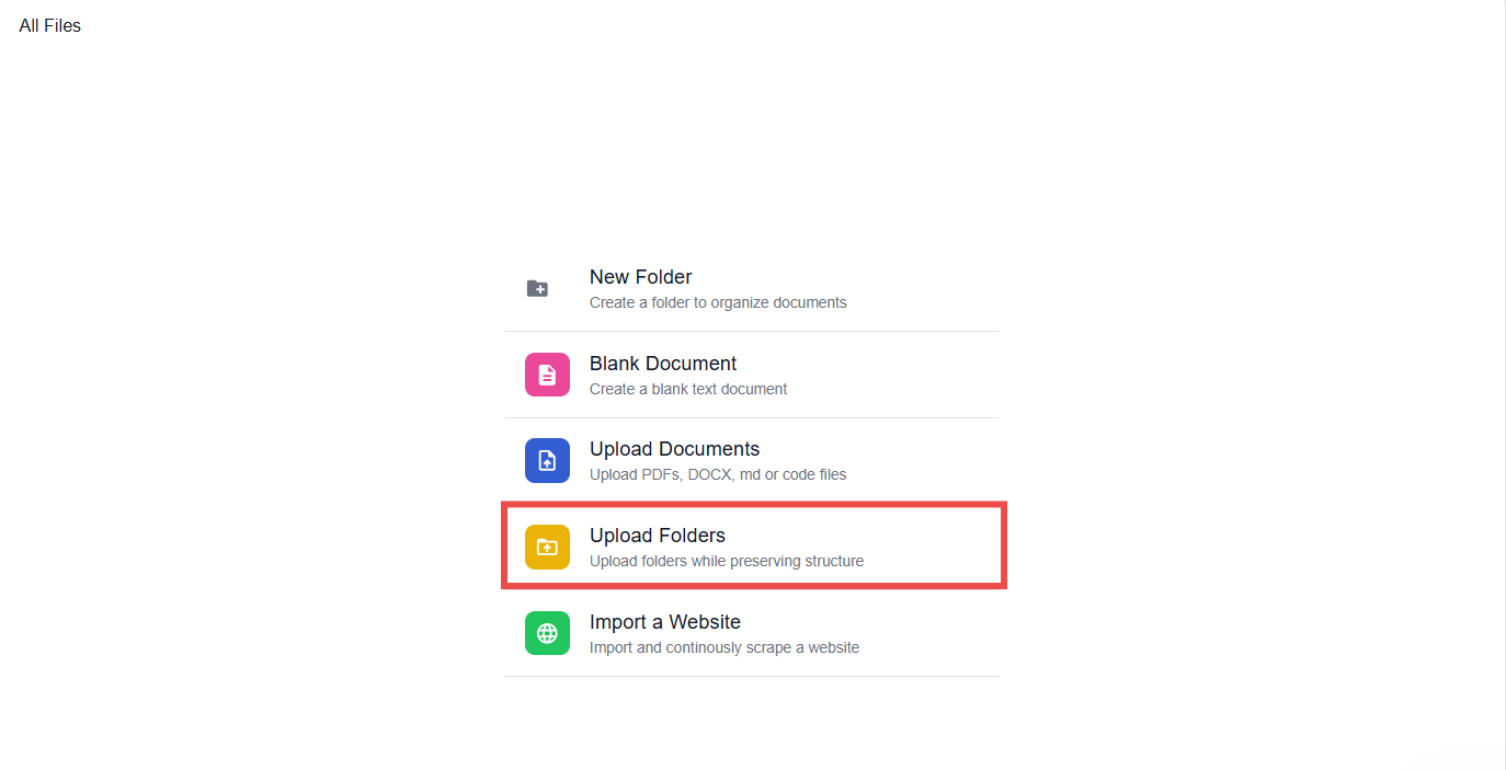 The uploaded files will be visible under All Files or inside the folder you selected.