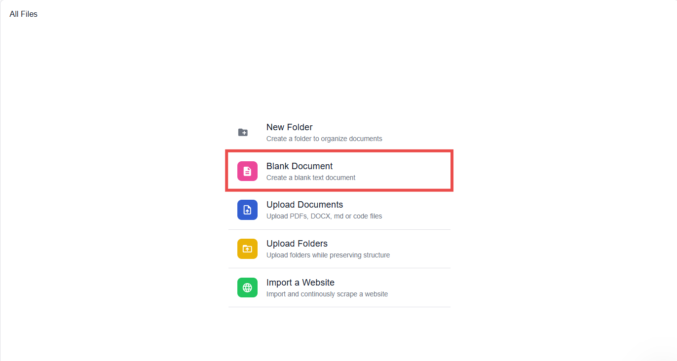 Use this option to quickly create a simple text-based document directly within the Knowledge Center.