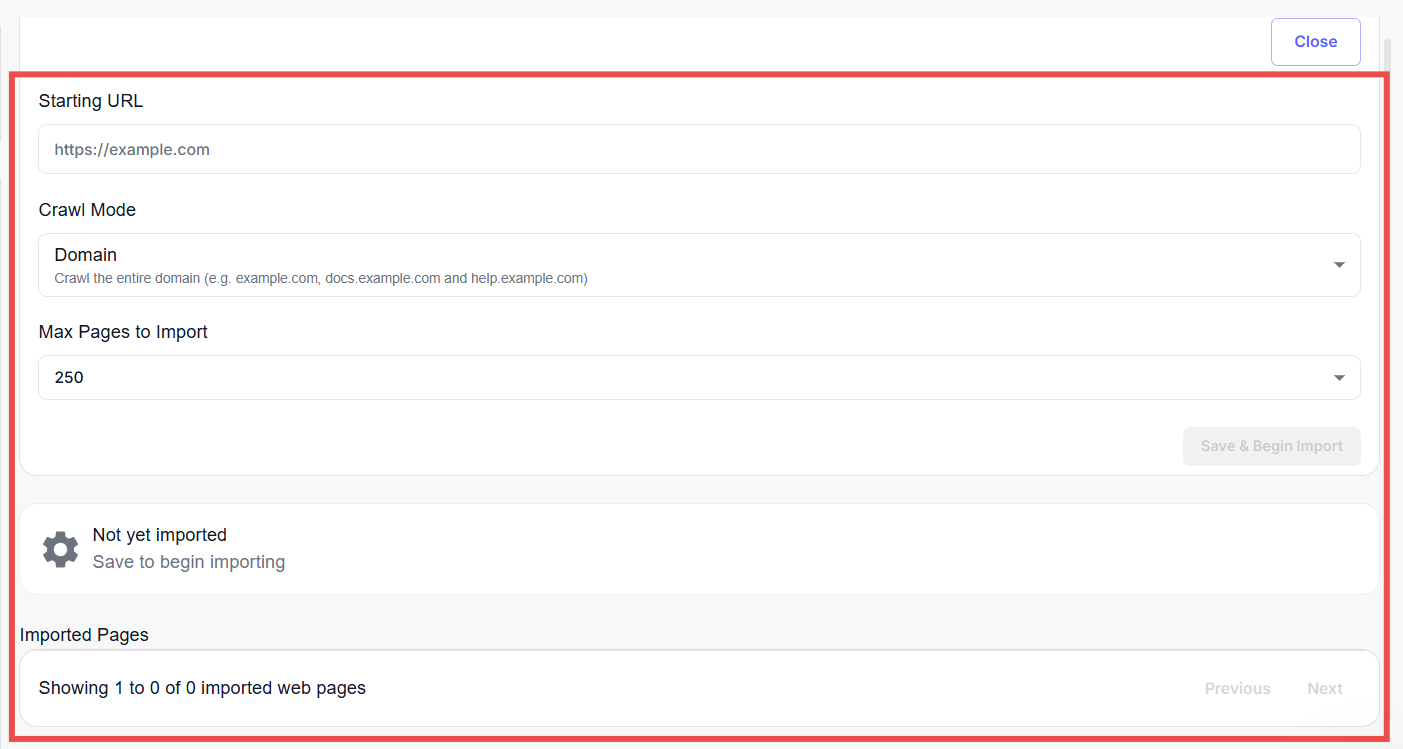 Click on the Save & Begin Import button, and the system will fetch and sync content from the provided site.