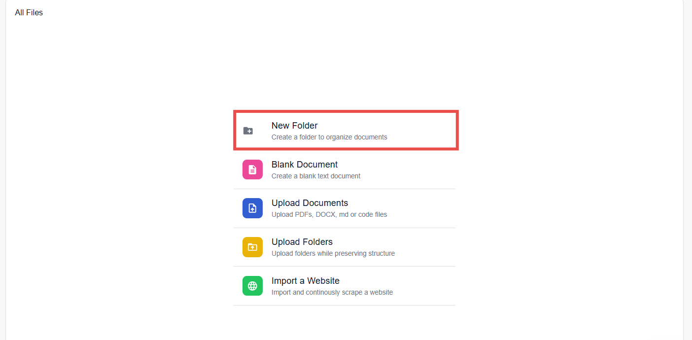 You will be navigated to the Knowledge Center dashboard, where you can see all your folders, documents, and import options.