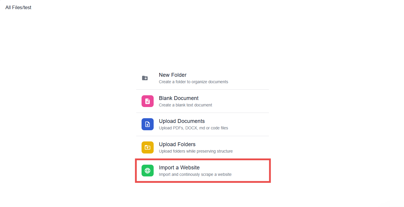 Use this option to continuously scrape and import content from a specific website into your Knowledge Center.
