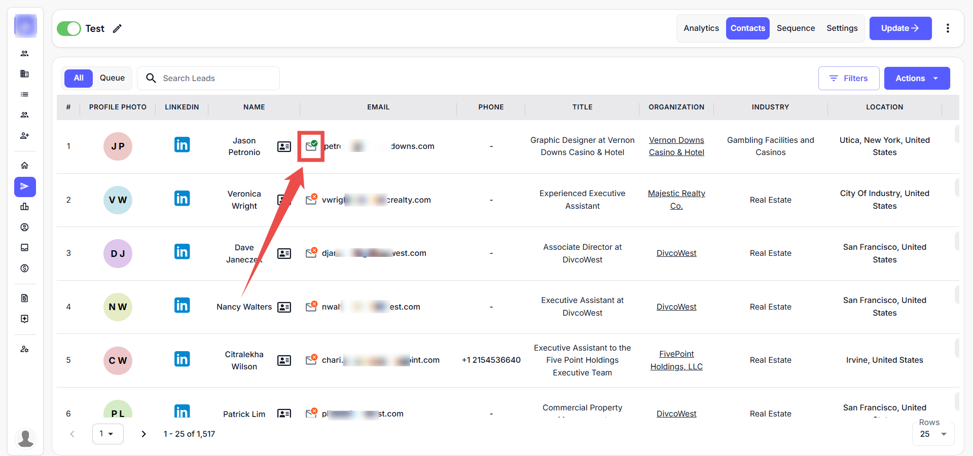 Note: You can view the email validation status directly on the Contacts page under Campaigns, consolidating information in one place. This enhancement improves both efficiency and visibility.