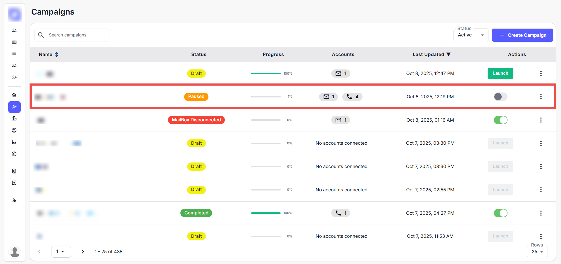 Once you’ve created your campaign, it will appear in the Campaigns tab. For reference on how to create a campaign, refer to the Campaign Sequence Setup documentation.