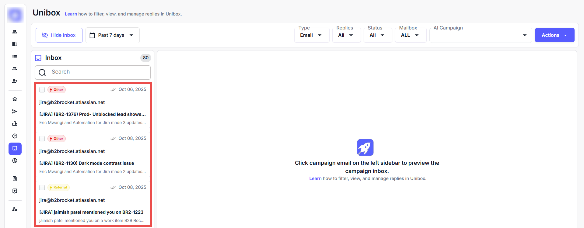 Step 1: Click on the Unibox icon from the left-hand sidebar.