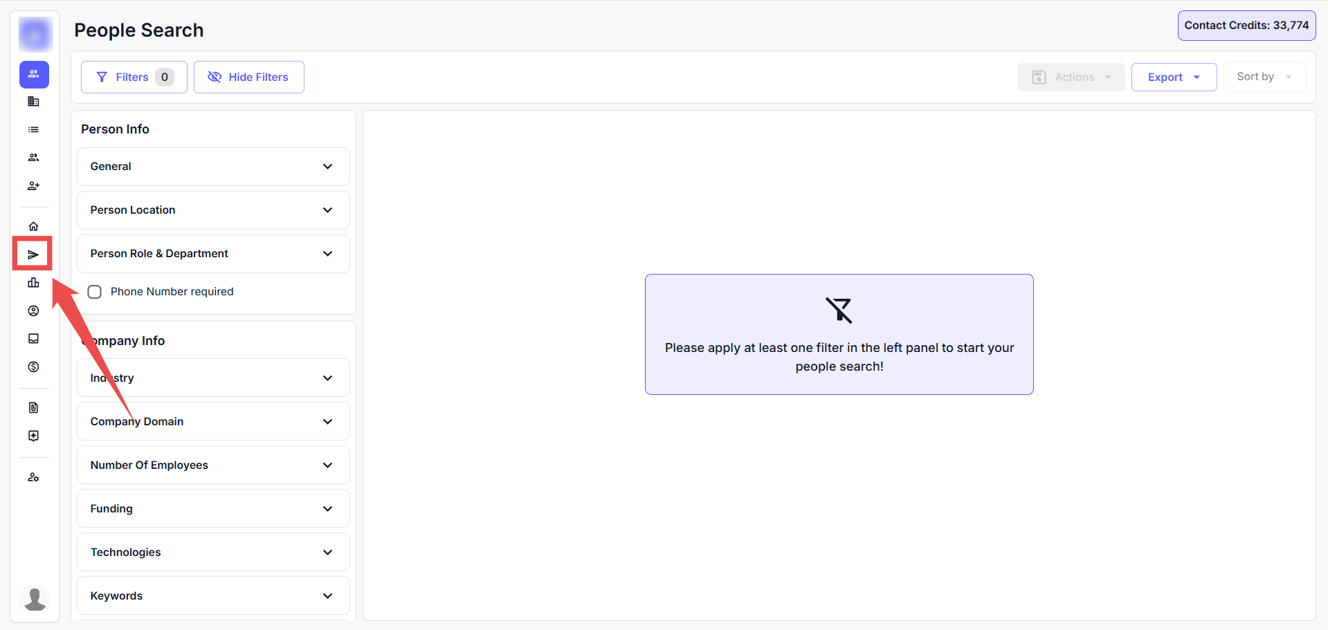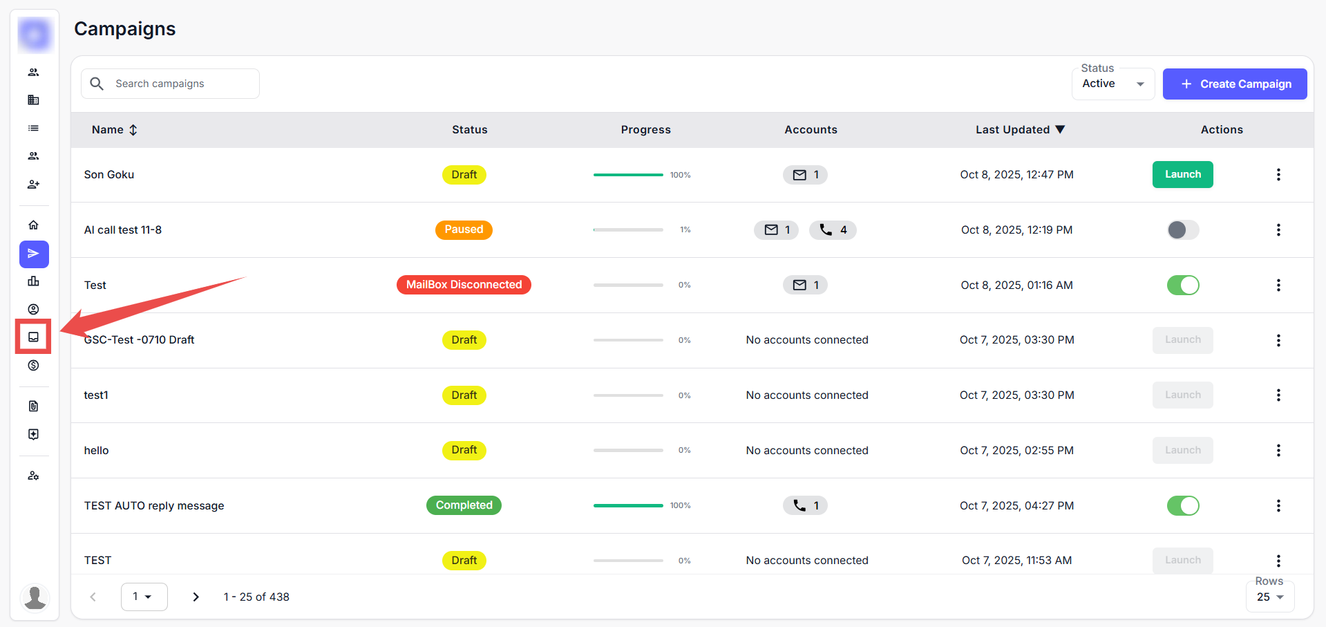 Step 1: Click on the Campaign icon from the left-hand sidebar.