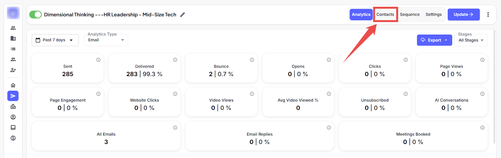 Step 1: After selecting the campaign, click on the Contacts tab.