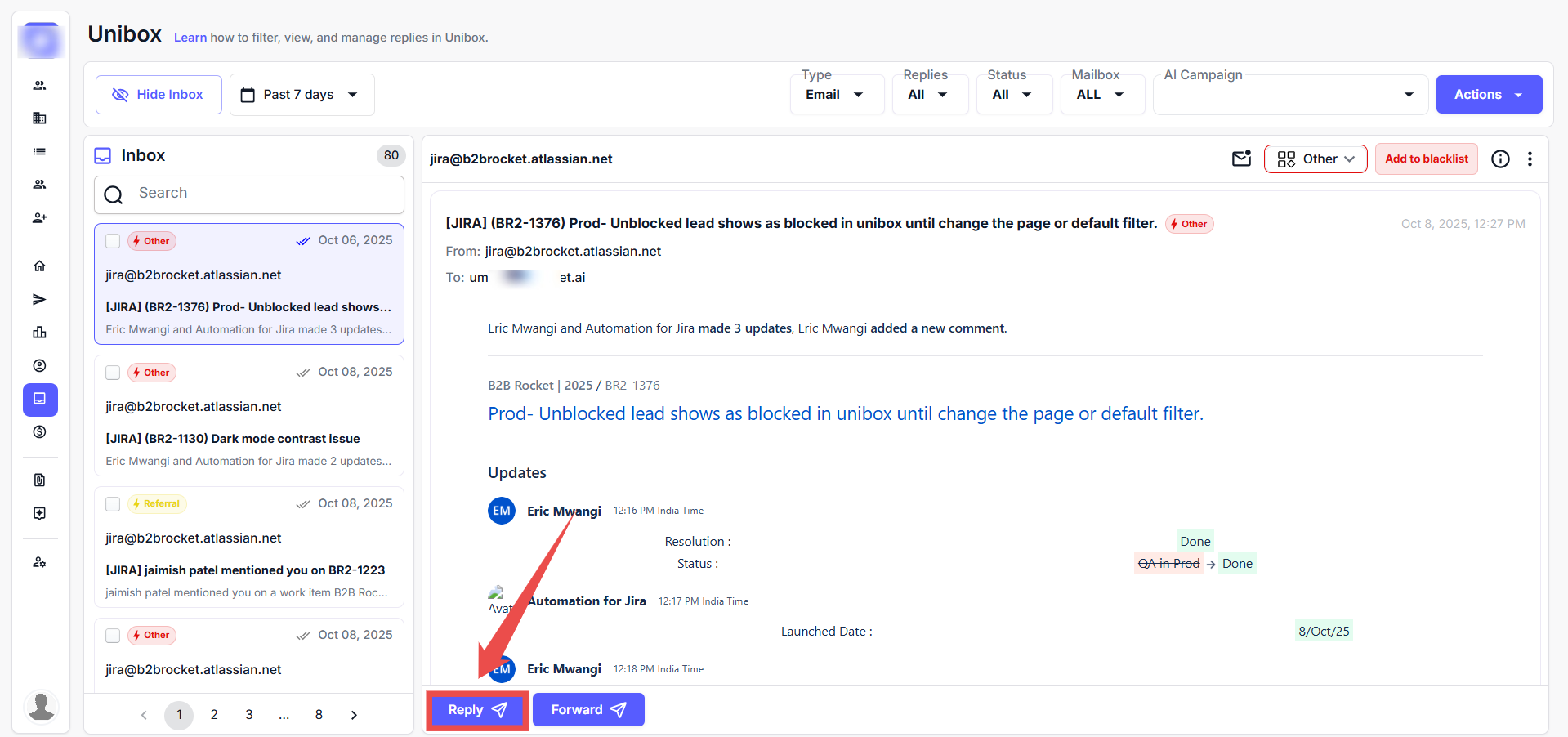 You will be navigated to the Unibox. Here, you can preview replies.