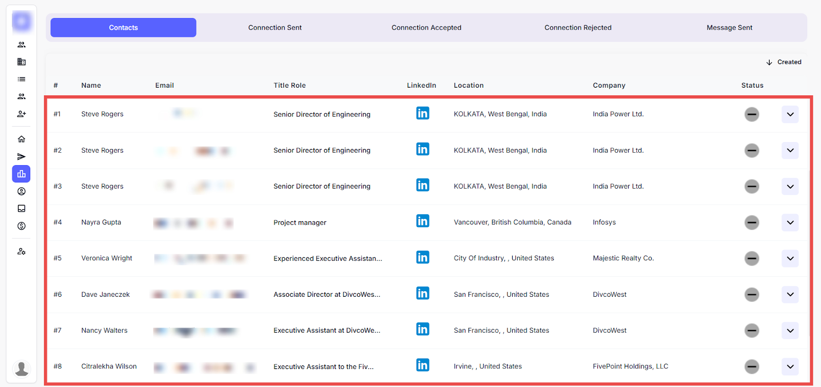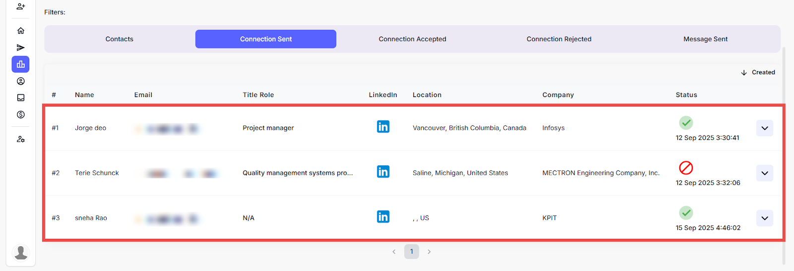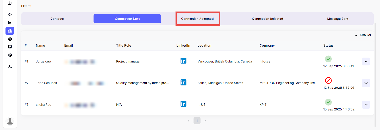 Here you can view the list of leads who have accepted the LinkedIn connection requests.