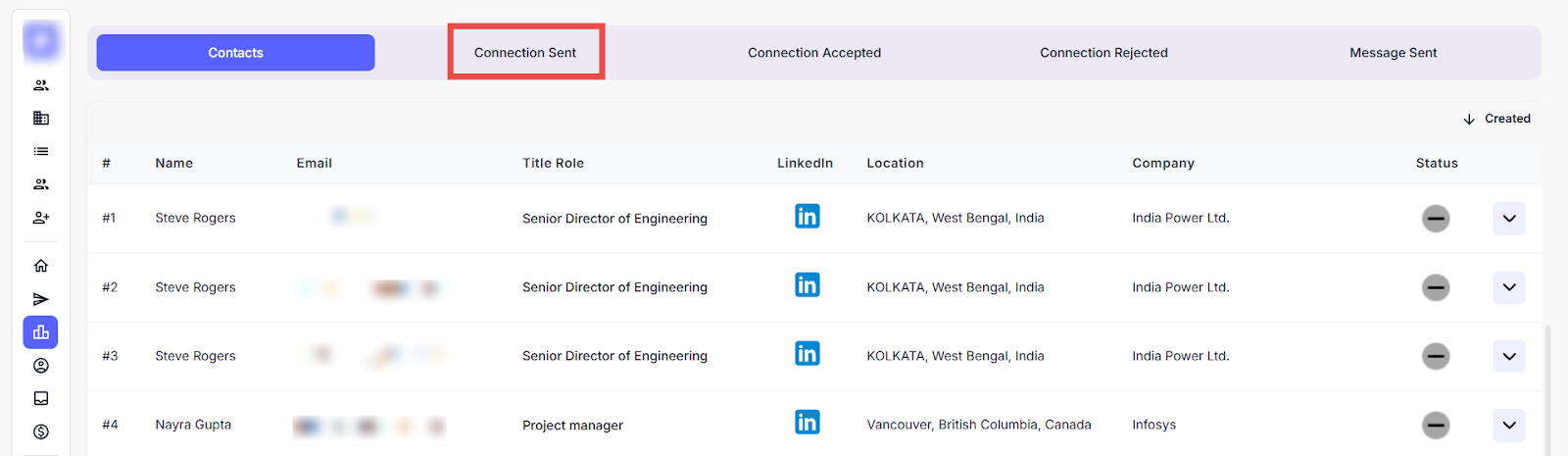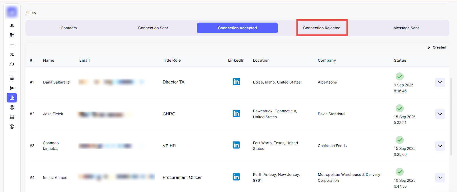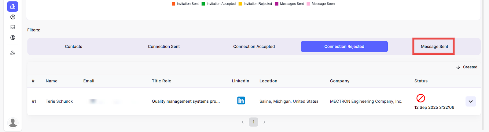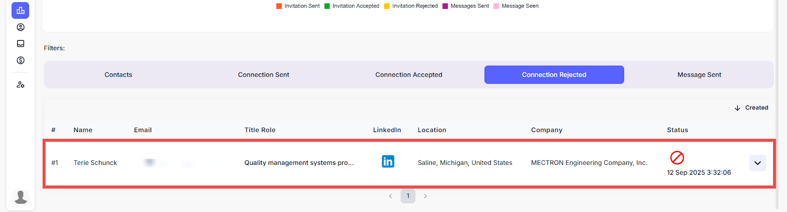 Here you can view the list of leads who have rejected the LinkedIn connection requests.