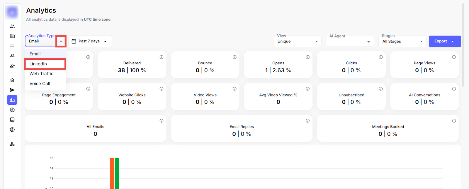 Step 2: Click on the Analytics Type drop-down menu and select the LinkedIn type.