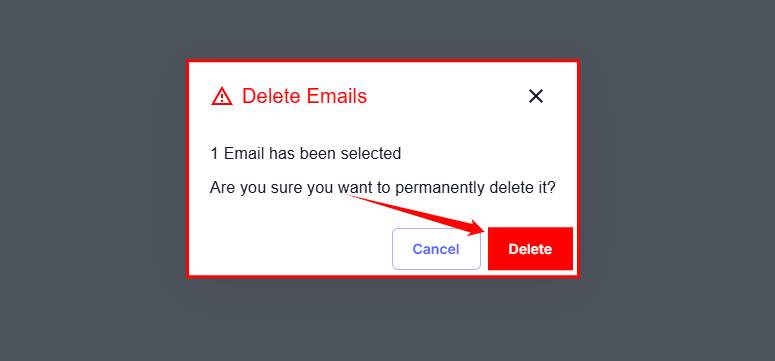 Step 3: A modal window will appear asking for confirmation. Click the Delete button to permanently remove the selected email from the blocklist.
