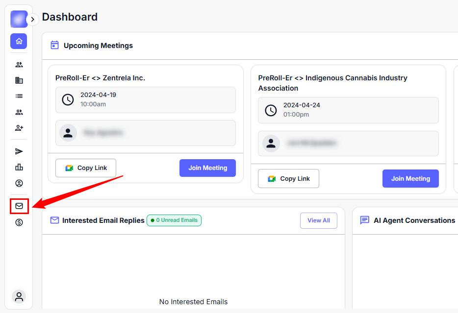 You will land on the Email Inbox page by default. This section shows a list of all replies received across connected email accounts.