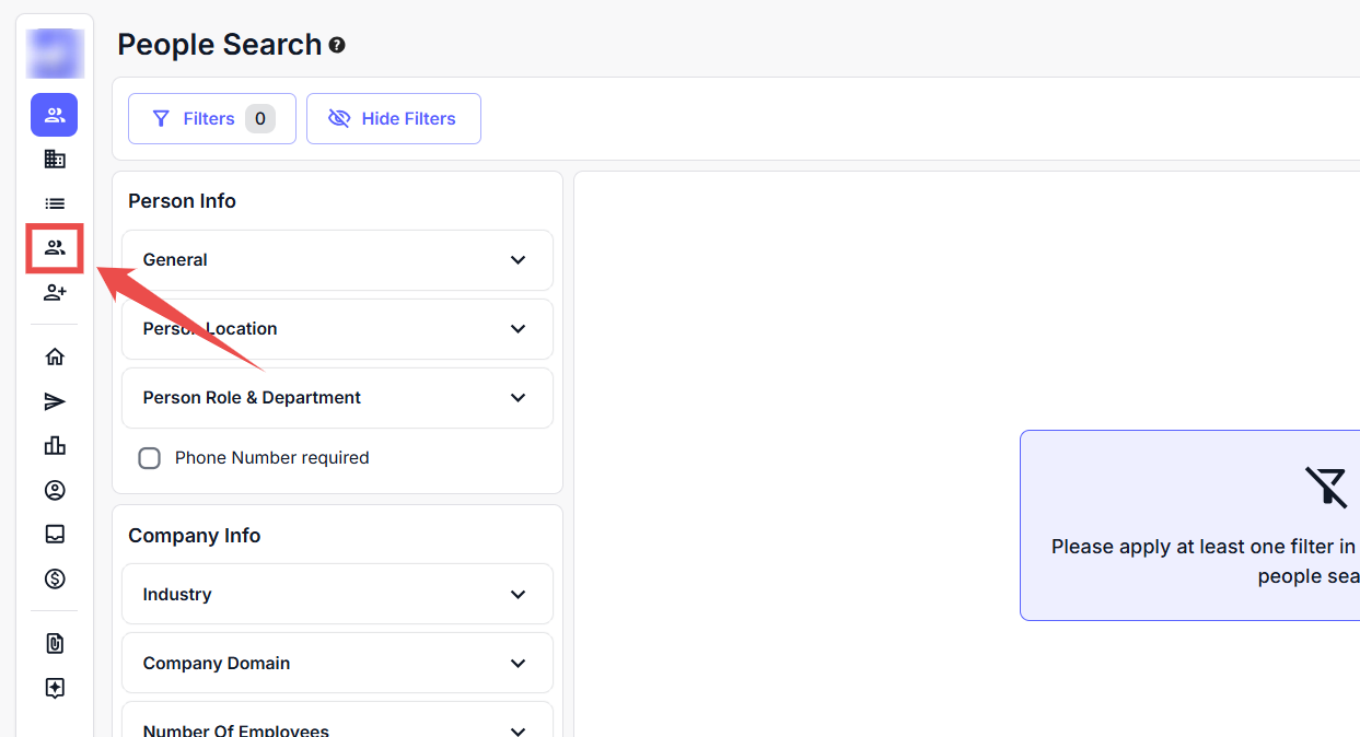 Step 1: Log in to your account and click on the contacts icon on the left side of the interface.