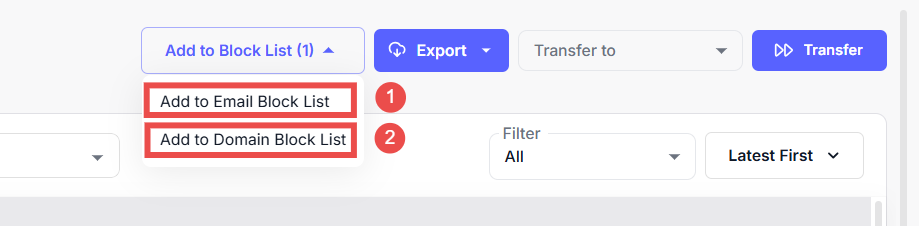 The Add to Block List feature allows you to restrict specific leads from further communication. You can block individual email addresses or entire domains to ensure no outreach is sent to them in the future.
