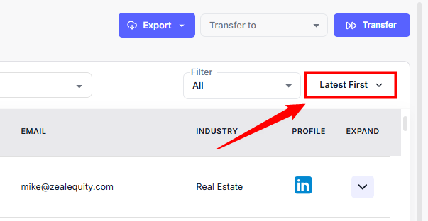 Sorts the leads by the newest first, showing the most recently added leads at the top. |
